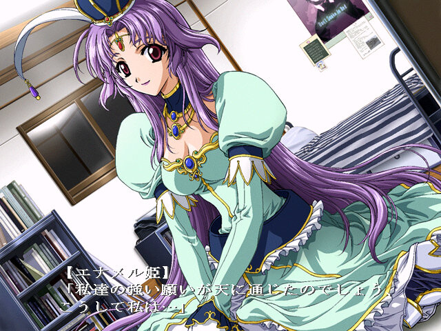 Main character is a reincarnation of a legendary hero. He has no choice but to save a different world by collecting crystals, rescuing damsels in distress and defeating the demon king. vndbreview]