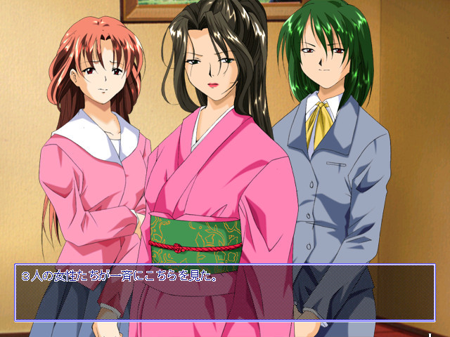 Three girls compete to be the bride. Main character needs an enduring wife, so he organizes a series of severe compatibility tests. vndbreview]