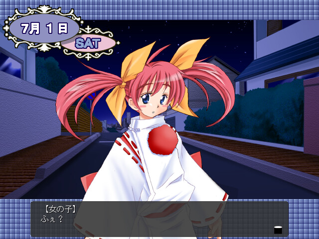 On the moonless night the hero stumbles upon a strange girl. She speaks of herself as master of ceremonies that was kicked out due to being useless. She ends up living with the hero. What's there behind her past? vndbreview]