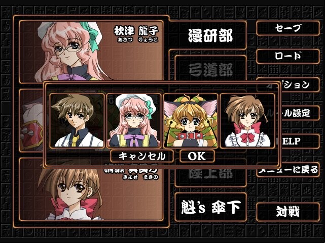 The players character (Kichijouji Kai) loves to play mahjonng and wants to become a regular member of the mahjonng-club of the school.