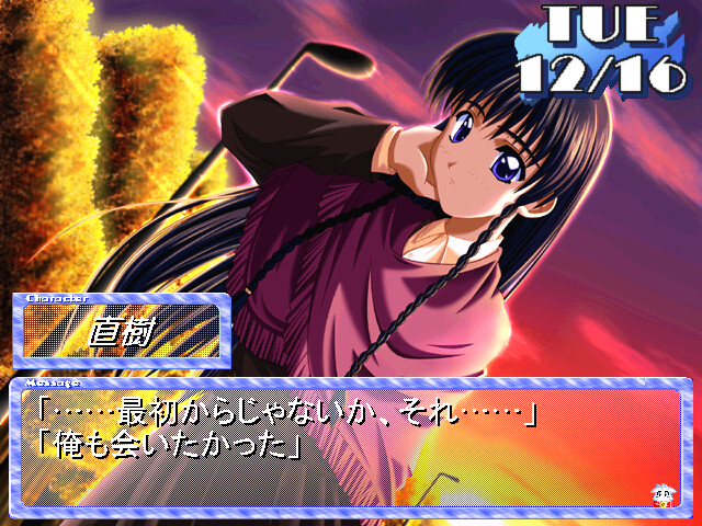 It's a cold winter day. Suddenly a warm feeling is born inside me. It gently melts the frozen heart. It's a soft warmth like the sun in winter. It was that one encounter that gave me warmth. vndbreview]