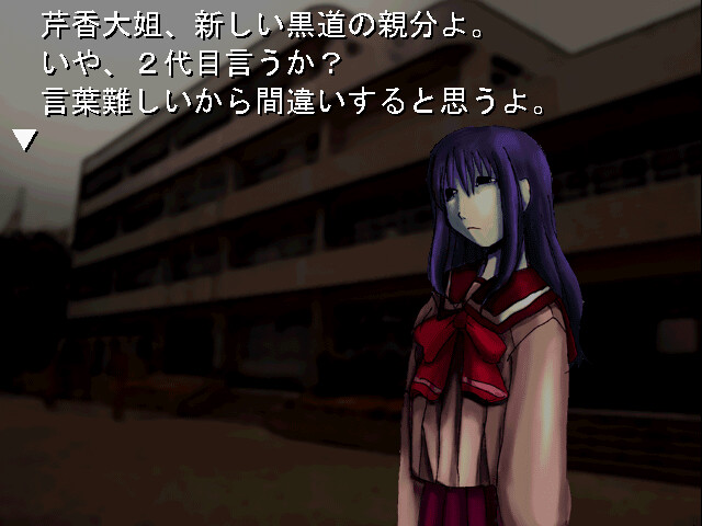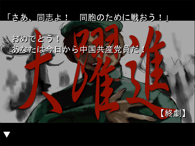 Parody game of ToHeart. Japan is occupied by China. Dark atmosphere engulfs everything. Main character struggles every day to survive in this chaotic world. vndbreview]