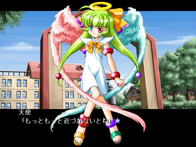 Protagonist is a normal high school student, has at times he sees strange scenes and gets depressed. One day he meets transfer student Yanan Michiru who calls herself an agent of human world management institution. According to her tale, hero has an ability to see the world where the balance is being broken by a stray angel. They will go to school together and search for an angel.