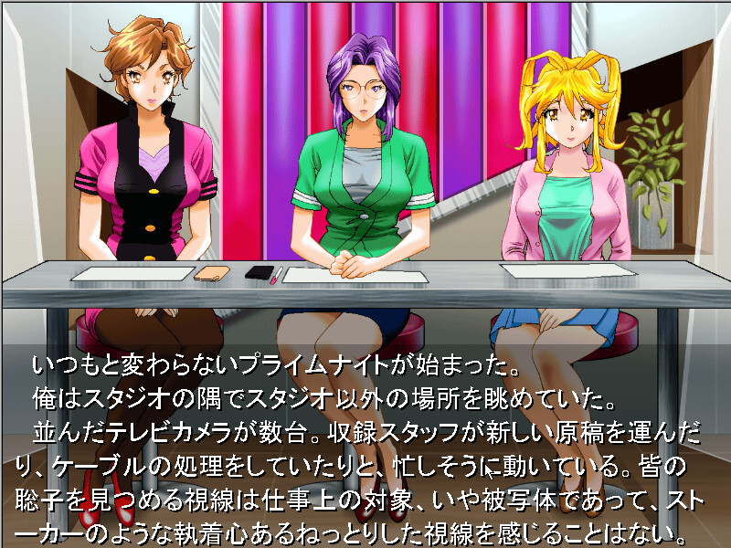 JBS channel popular caster Satoko Kondo is pursued by stalker lately. Pictures are sent to her office and home. She hires a detective who happens to be main character, but opponent cleverly escapes the traps. At the same time a female colleague of Satoko tries to seduce the detective. Can hero avoid the trap himself or is it possible to play the cards right to approach mystery revelation?