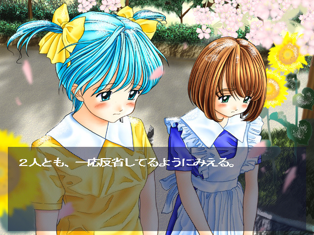 Main character Takahiro visits his home town during the spring break. By his father's recommendation he decides to take care of two girls at a religious organization's facility. Maki has a bright personality and Nami hardly talks at all. Hero will need to learn the private mystery behind girls lives.
