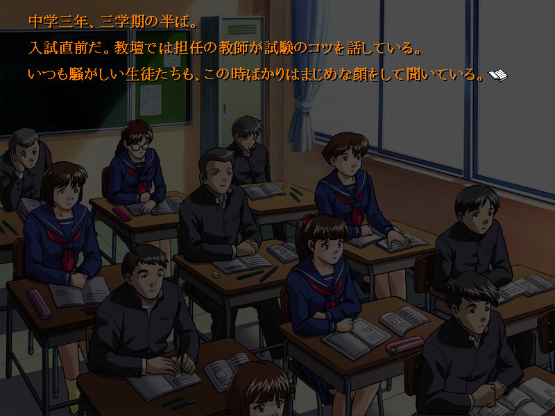 Hiroshi and Yukiko were going out at school. After graduation Hiroshi went on to university in Tokyo and found a new girlfriend. They meet again in seven years at alumni gathering can't get enough of each other. However Yukiko gets leukemia and gradually weakens day by day. vndbreview]
