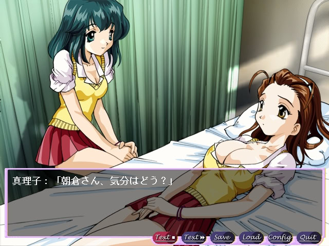 In this story, you play as a girl named Mariko. Her best friend is Moe, the one with the large breasts in the picture. Moe has anemia, so Mariko ends up taking her to the infirmary pretty often. Mariko also has a boyfriend, Kenji, who starts to develop feelings for Moe. Mariko decides to get revenge...