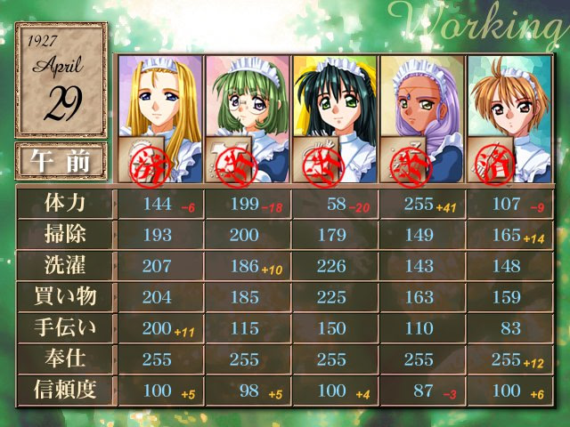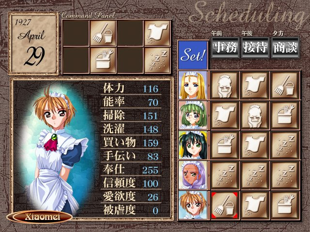 Our guy's father's will orders him to train 5 maids under his secretary's supervision. He has to work them day and night. All 5 maids love him, but will he be able to forget his lost lover (a maid shot in a street riot) and love them back? Li's Fun House]
