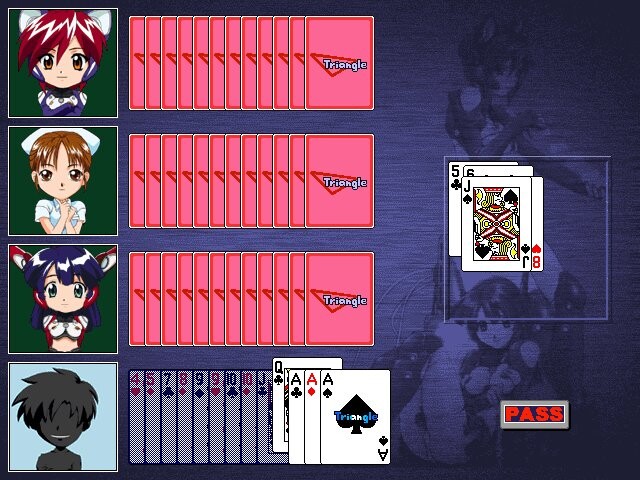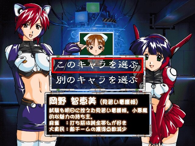 Two girls greet you in an entertainment place. They explain the place to you and ask you to pick one of 12 girls to play a virtual situation. To finish each situation, you need to win four majong games or rich-man card games with the girl. If you manage to get all 12 girls, those two will challenge ...