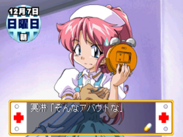 The protagonist of the story is hospitalized and needs to stay for three months in a hospital. What to do during all that time, worry about getting better? Nope, walk all over the hospital and try to woo the nurses and hospital staff. First part of the game centers on your trying to win the heart of the woman of your choice in a typical love simulation style. Second part then turns into a romantic visual novel story.