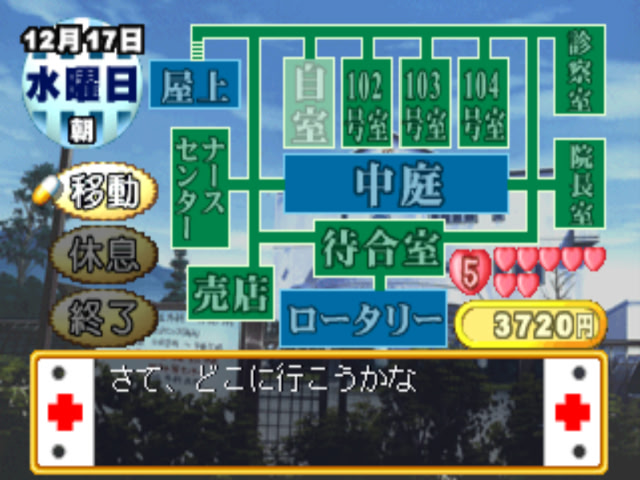 The protagonist of the story is hospitalized and needs to stay for three months in a hospital. What to do during all that time, worry about getting better? Nope, walk all over the hospital and try to woo the nurses and hospital staff. First part of the game centers on your trying to win the heart of...