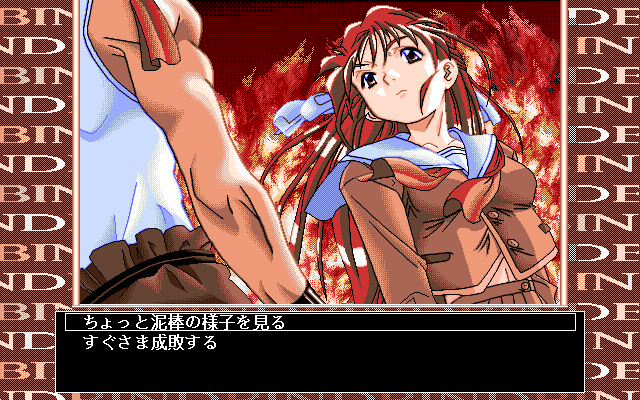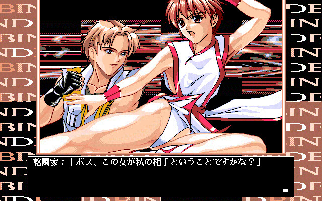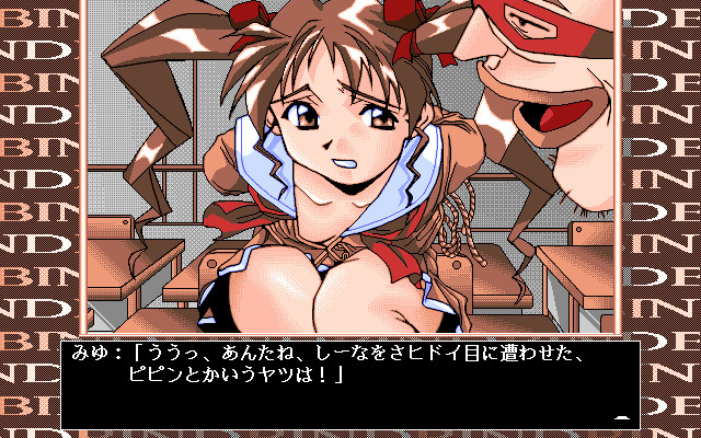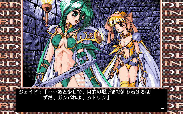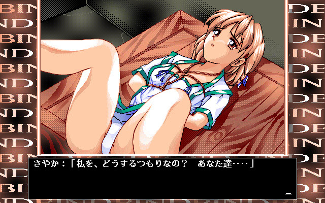The content of the game can be easily deduced from its title ("Kinbaku Jinmon Densetsu" means the legend of bondage interrogation). The game contains three "episodes", unrelated to each other story-wise. The first one is set in medieval times and tells about the adventures of two female treasure hun...