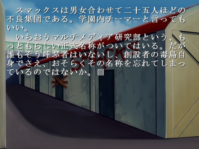 Prestigious private school has become a nest for a gang of bad guys "SMACKS". One day a diligent female student visits this den voluntarily. What's her aim and why she's doing it out of free will? vndbreview]