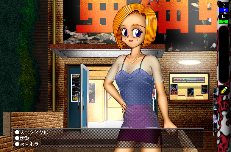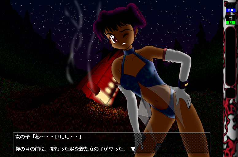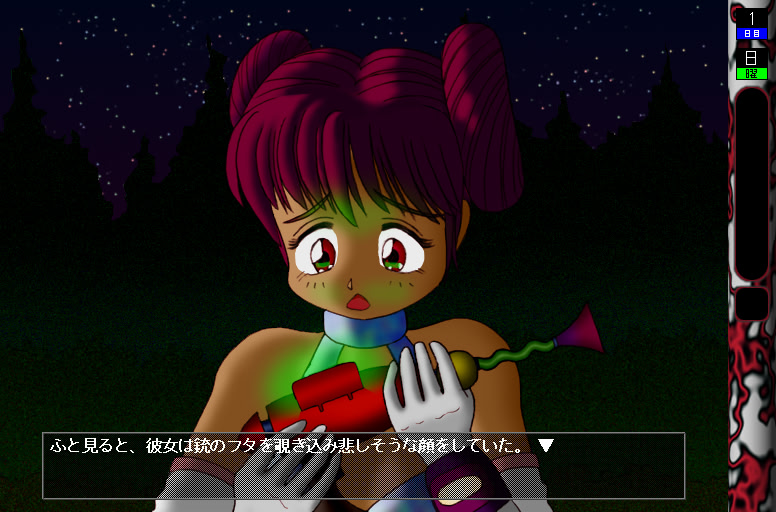 Hero was driving a car in the mountains. The car wrecked and he was self-pleasing while looking at the starts - one star rushed to the ground. When hero arrived to the crash site, the star turned out to be a spaceship. An alien girl princess Pam showed up from it saying that it was the energy genera...
