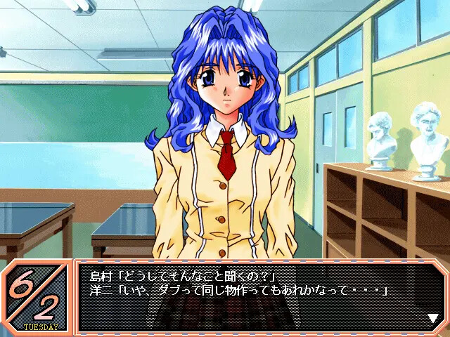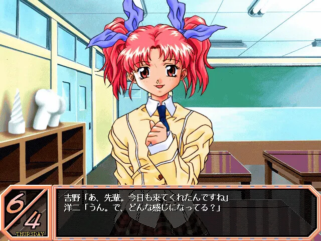 "Sumomo Hakusho" is comprised of a Adventure game component, whereas the main character is in the Art Club (Pottery dept.) preparing for the upcoming Culture and Arts Festival for the school. During that time, he can attend to school life, and in the after-school hours, he has a choice of going to different places in the school and help out different girls. Of course dating them goes next...and endings are pretty much of the standard storyline.