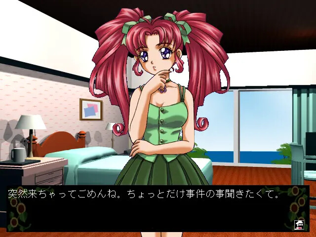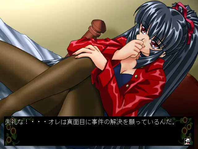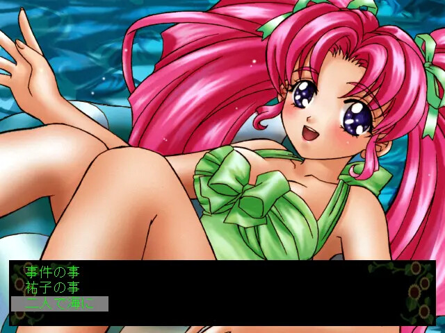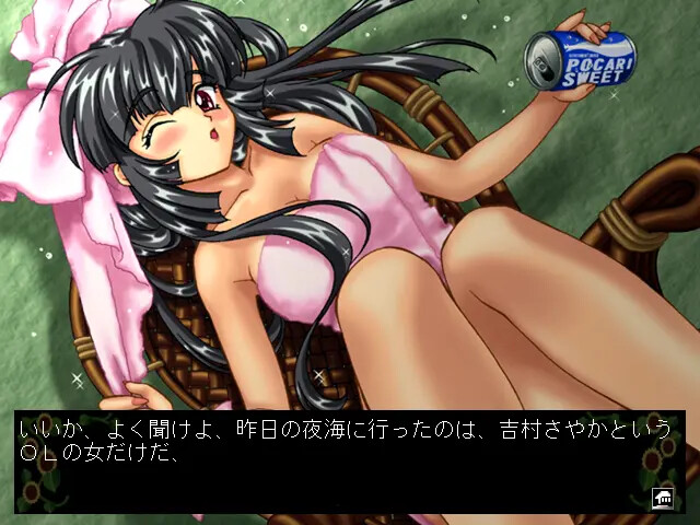 A corpse of a man is found at the hotel beach. The protagonist is an aspiring detective who agrees to solve this case while chasing after pretty girls staying at the hotel. vndbreview]