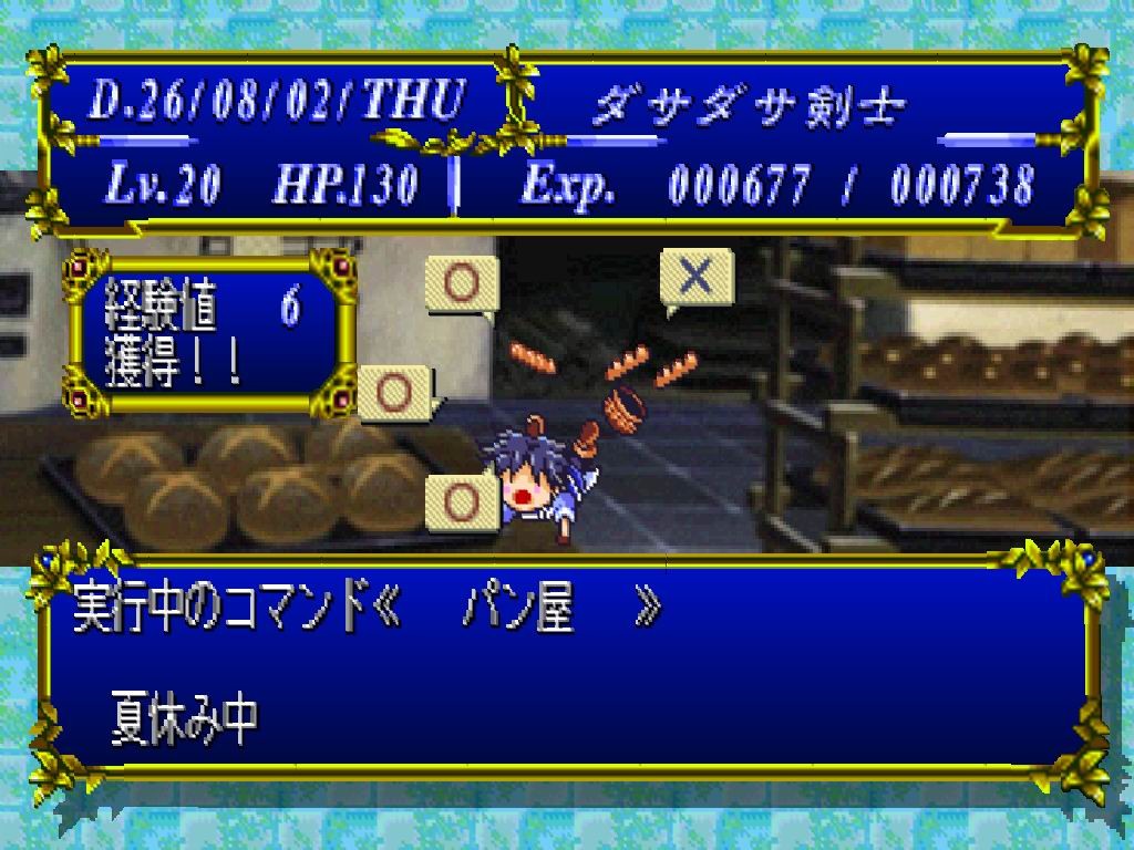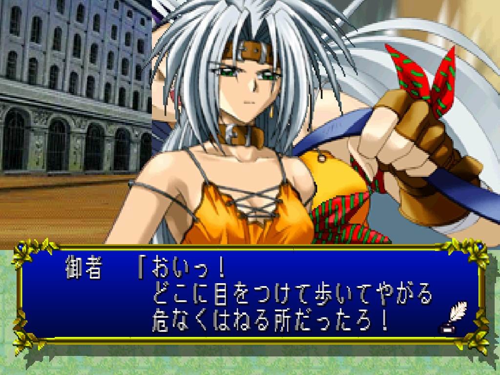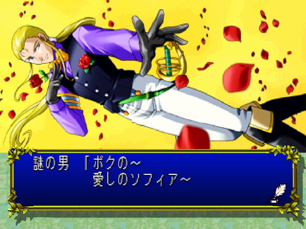 The player is a mercenary from the east travelling to the kingdom of Dolphan, modelled after middle-ages Europe. He had been hired to aid the war fought by the country, which will last throughout the following three years of the game, where the player will meet a number of the different characters and develop a relationship with them.
