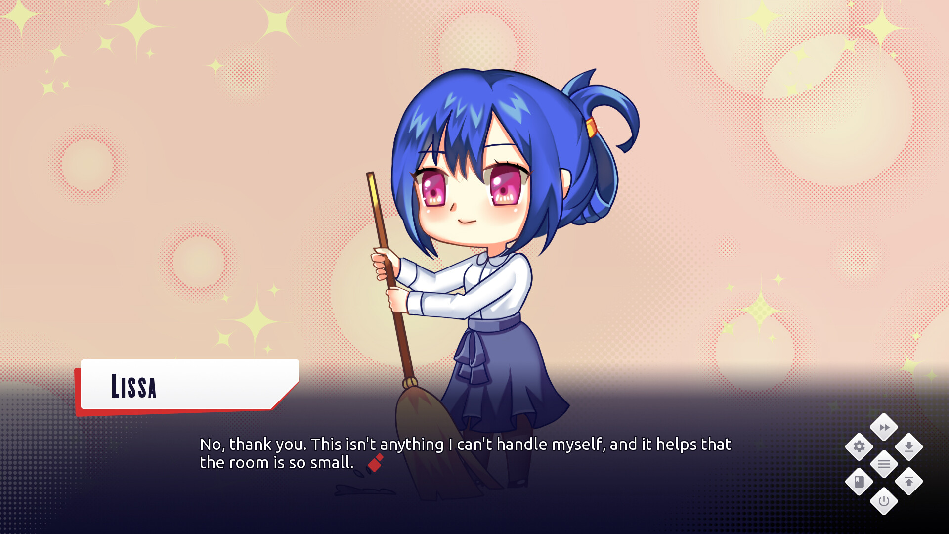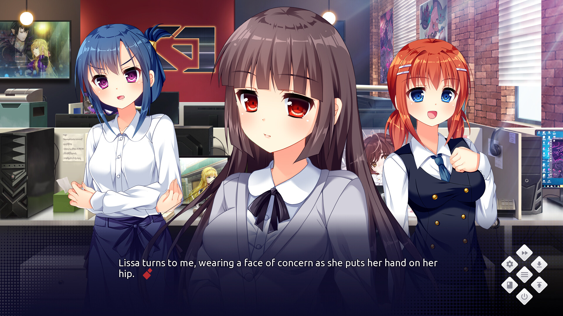 Your life is a peaceful one. Each day, you work alongside your (otherwise?) all-female workforce in the pursuit of creating otome games.