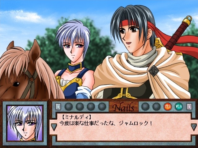 People and nail people share the same continent and are in constant struggle against each other. At some point a relative peace has been settled and both populations continued to coexist in several smaller nations. The stage is Altair Kingdom. Jam Rock is a famous swordsman. One day on the way ho...