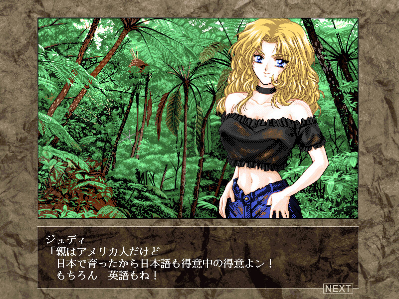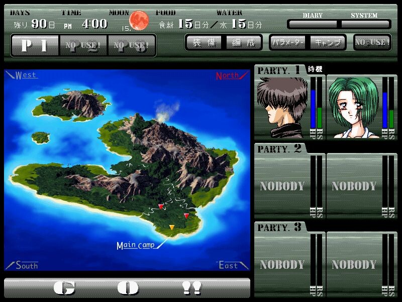 The story behind Desert Island is that you and six other people (all girls) have been anesthetized and brought to an uninhabited island. You woke up from theanesthetic and found you and your sister is on an uninhabited island somewhere in the Pacific. You and your sister have no clue on how you two got on the island. However, you have soon found a radio inside a hut on the beach. From the radio, you are given the information that you and six other people have been transported to this island under the experiment called "J Project." The company conducting this experiment has informed you that you will have three-month to uncover the secret of J Project. From here on you will begin your exploration of the island to uncover the secret of J Project and gather up girls.