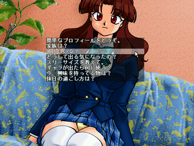 Girl Yuka appears in three adult videos. A Kansai dialect voice is also included and can be selected.