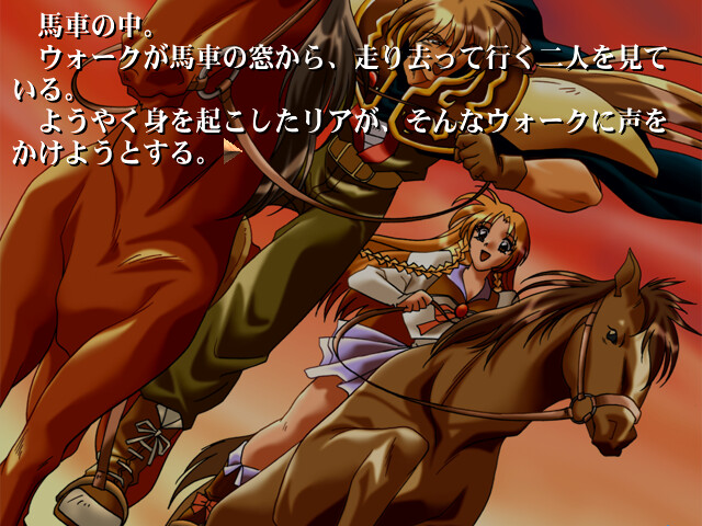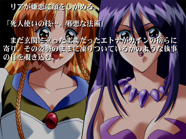 This game is a visual novel where all you can do is read and enjoy the pictures. The story is horror mixed with H. It deals with black magicians, a sad queen, the dark history of a mansion and our hero the bounty hunter. There is also a bit of love in there too.