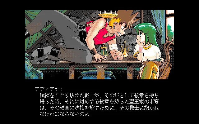 The hero of this game (whom the player must name at the beginning) is much more interested in pretty girls than in ancient prophecies and religious rituals. However, once he finds out that his sweetheart Adiana is a descendant of an ancient god, and that young men of the village participate in a dangerous ritual in order to be chosen as her husband, the hero decides he must act. Little does he know that this would just be the beginning of a long adventure, involving all this stuff he is not interested in... plus lots of pretty girls!