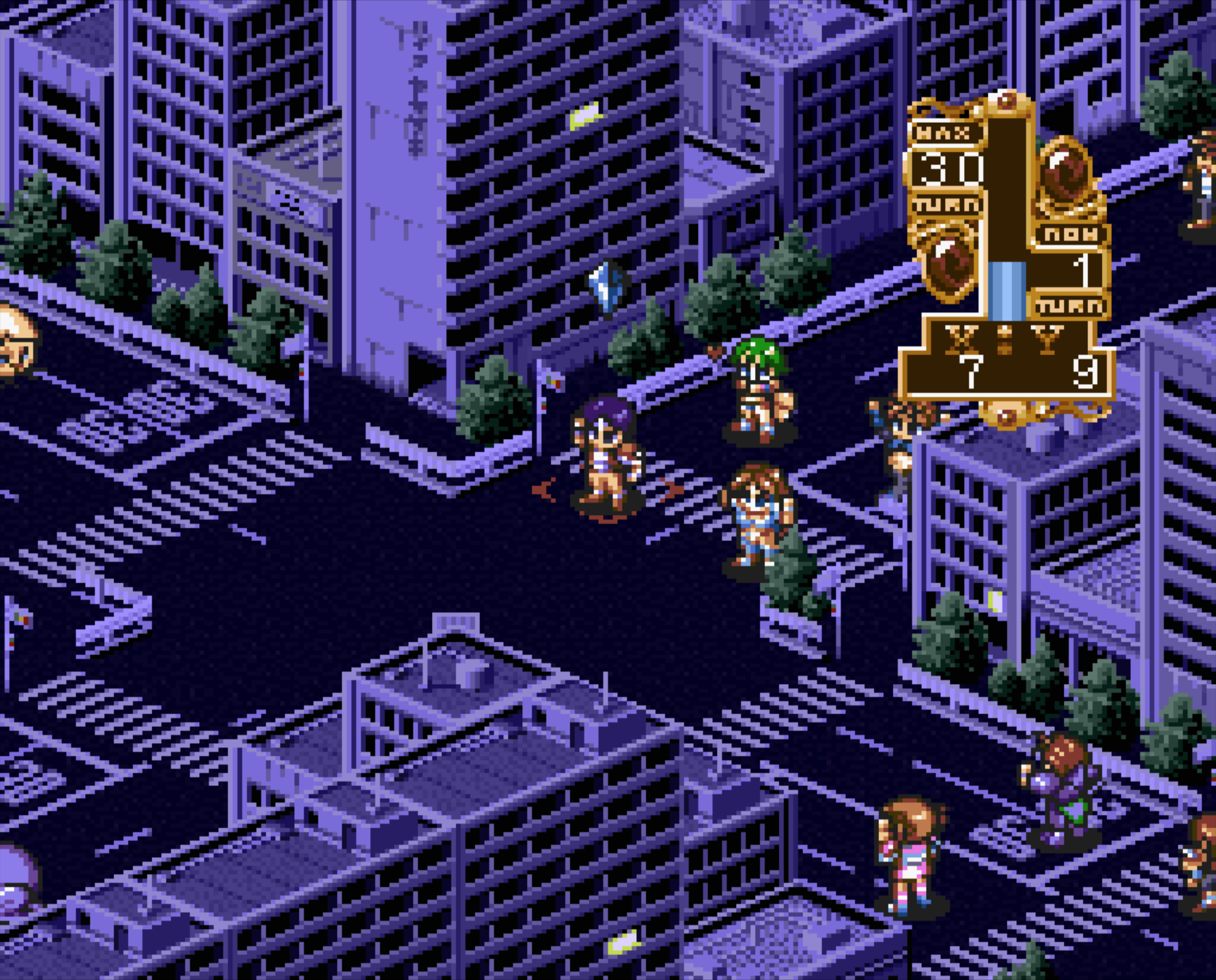 Sparkling Feather is a turn-based strategy game with slight RPG and "dating sim" elements. Large-scale battles of the Feathers against demons take place on isometric battle fields. The heroes move on the battle field, attack with weapons when an enemy is in range, and use offensive and healing magic. The party levels up automatically after having won a battle. Between battles, the player can play a roulette-type game, which may allow him to have a date with one of the Feathers (female and male!). During the date the player can choose conversation topics, and depending on his choices the parameters of the companions can increase or decrease.