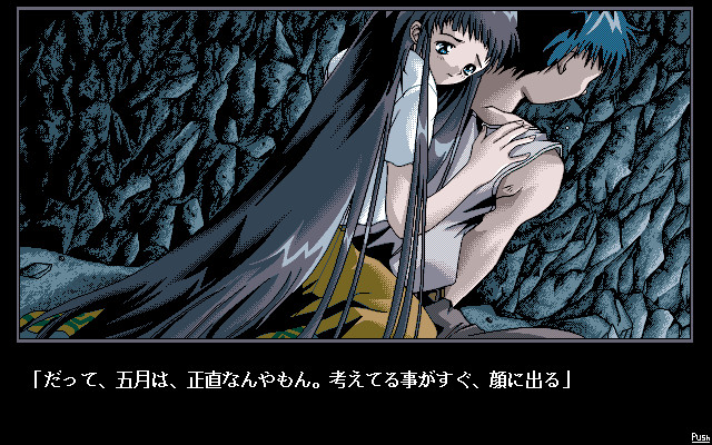 A boy and a girl run away with a mysterious stone and hide in a cave. But pursuers are nearby already. vndbreview]