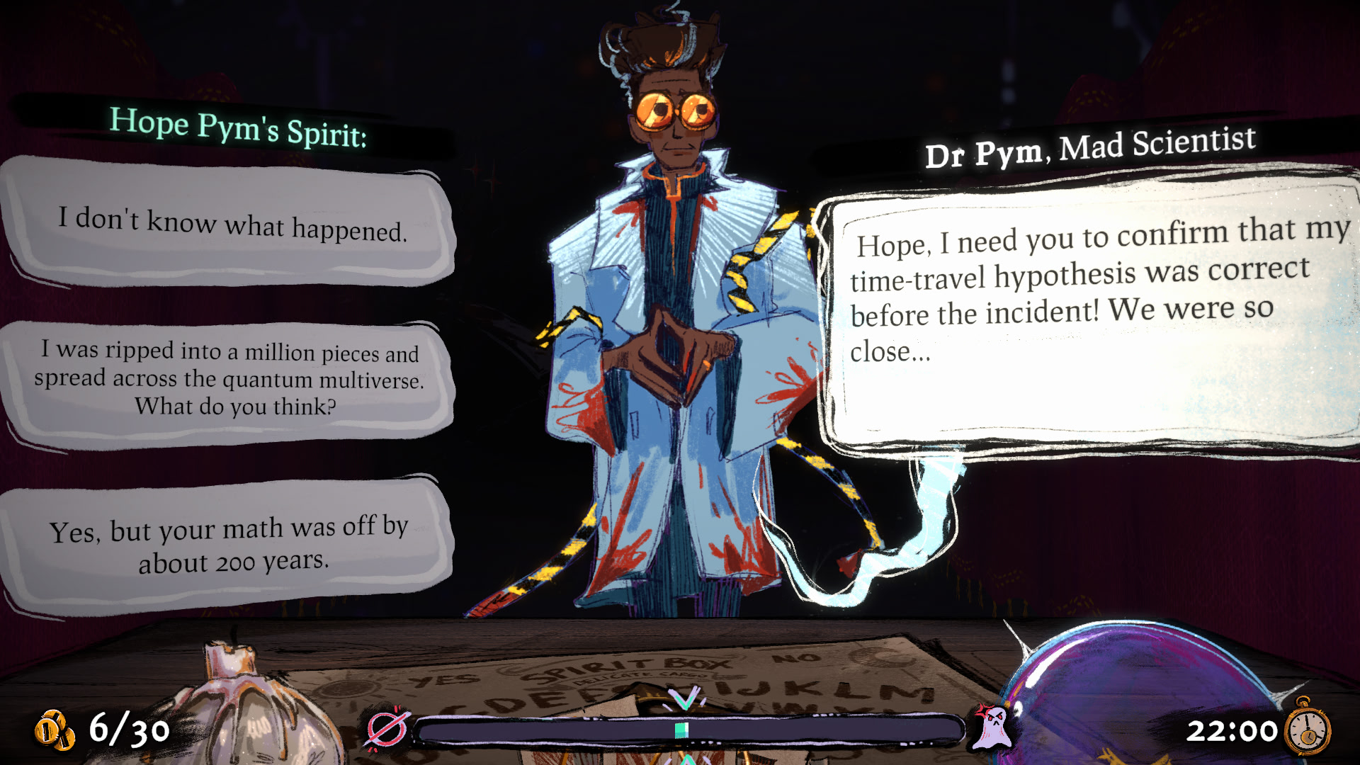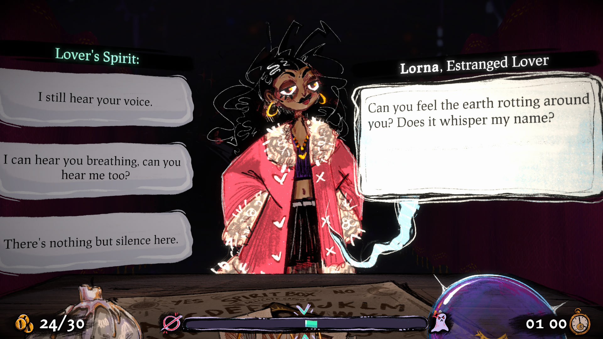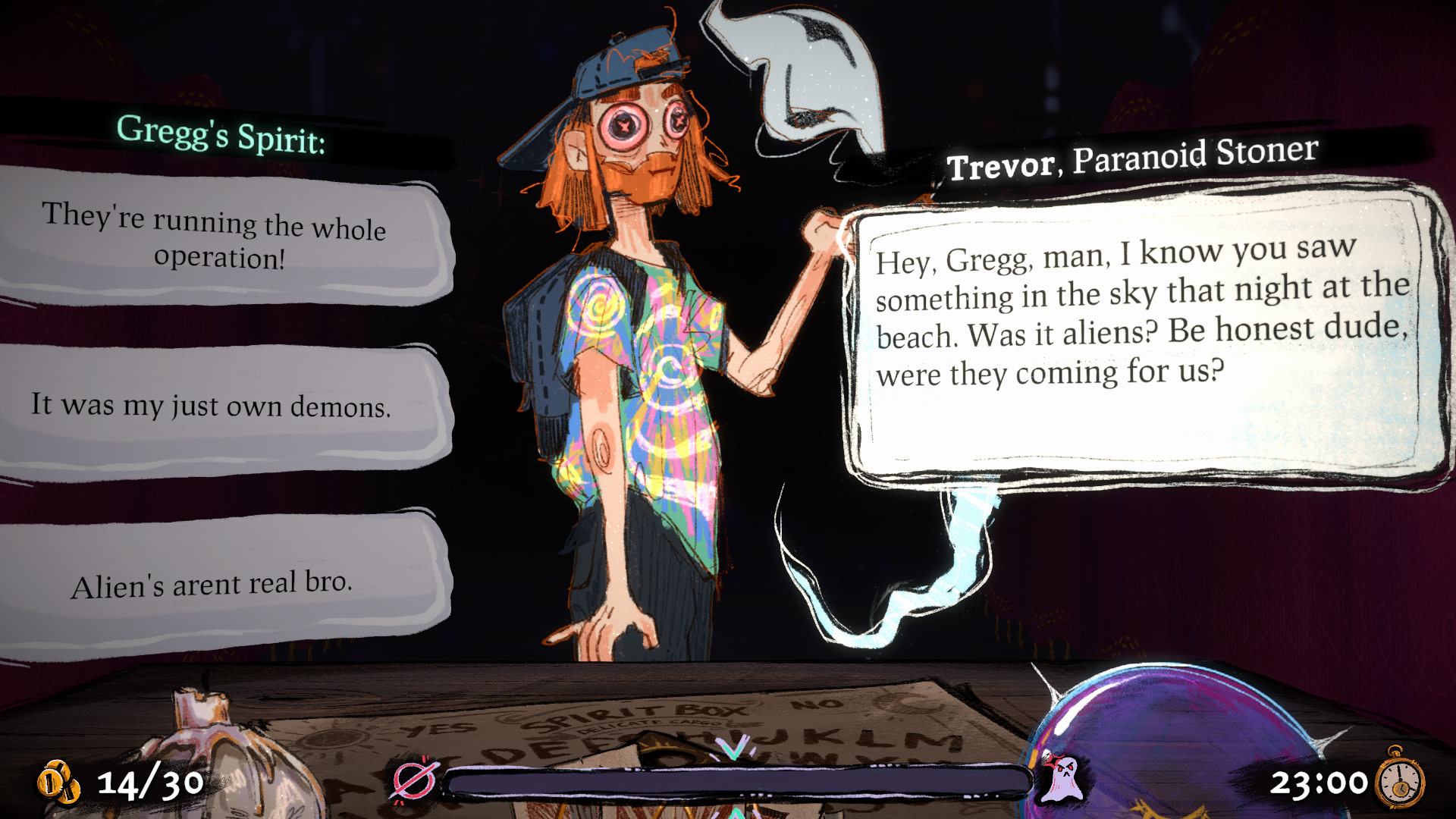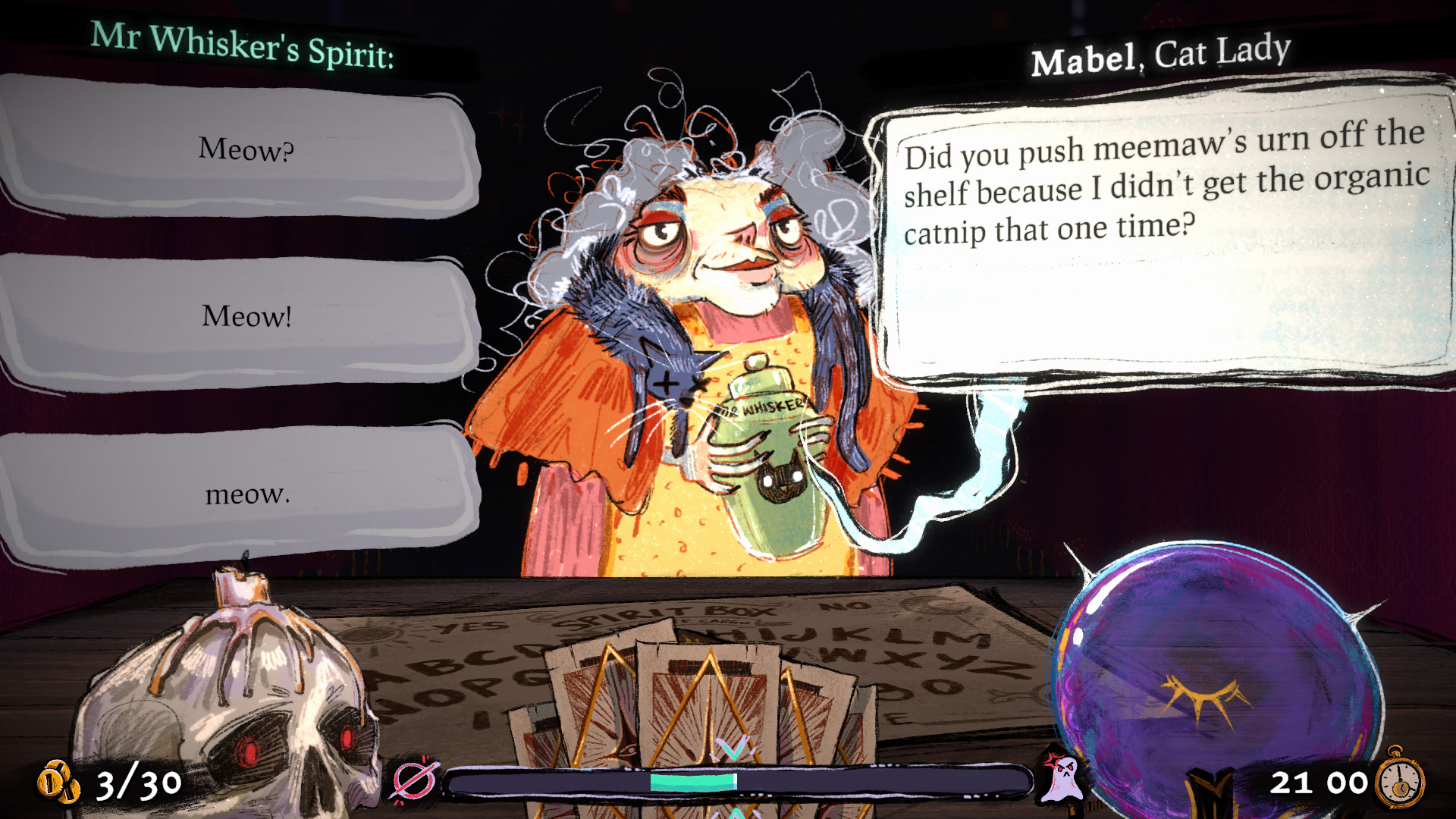 You balance quirky clients, questionable seances, and the pressure of earning enough coins to safely guide spirits to the afterlife. But beware, push your luck too far, and you might expose yourself as a fraud or, worse, let the spirits possess you.