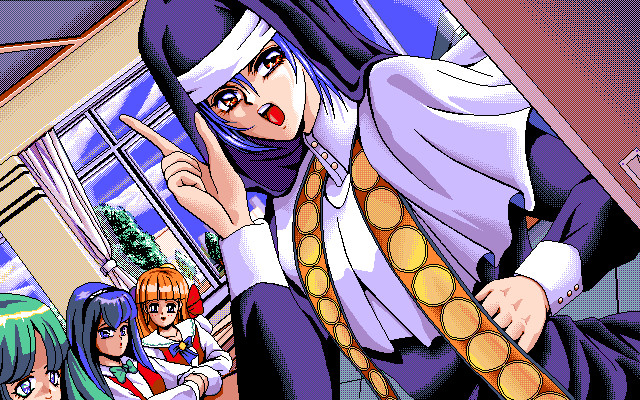 Gokko Vol. 02 School Gal's is very similar in structure to the previous volume, but - as the title implies - with a different theme. The player controls a young male protagonist (default name Lance), who has spotted a beautiful girl near the gate of the prestigious Finlandia Girls High School. He is determined to gain access to the school, which is also attended by his sister. Though men are strictly prohibited from entering the school building, the hero is resourceful enough to find a way in; what happens afterwards should be clear to anyone familiar with the many high school-themed bishoujo games...