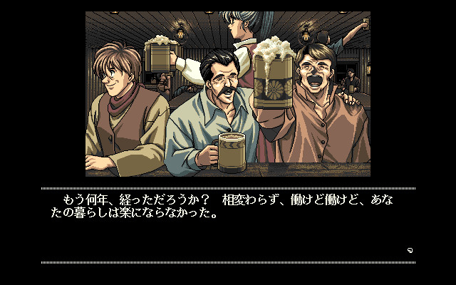 Hero is a warrior who enters a normal fantasy setting town and ... player choices determine the rest.