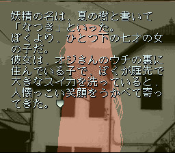 Sound Novel Gekijou: Natsu no Ki ni Sumu Nymph is the premade story featured in Sound Novel Tsukuru; a software allowing people to create their own sound novels.
