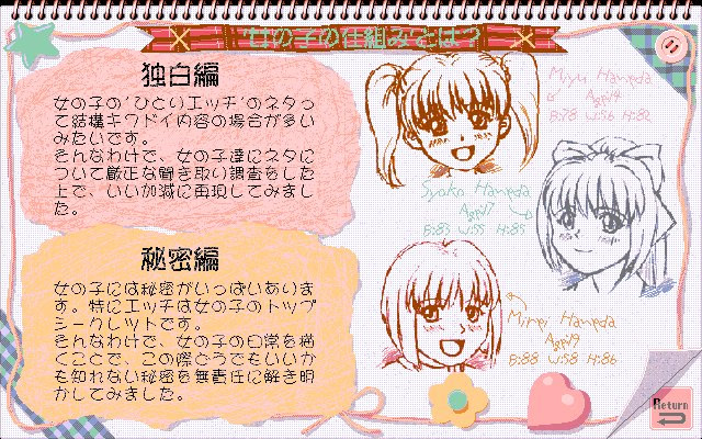 This game has stories for 3 girls, with 2 stories each. They are picture stories of course.