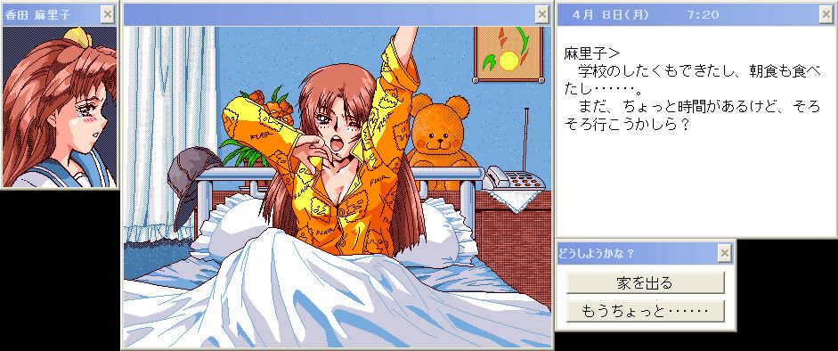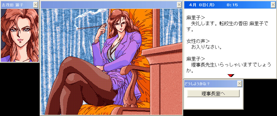 Heroine is a new transfer student. Player needs to lead her through the daily routine situations with an aim of losing virginity. vndbreview]