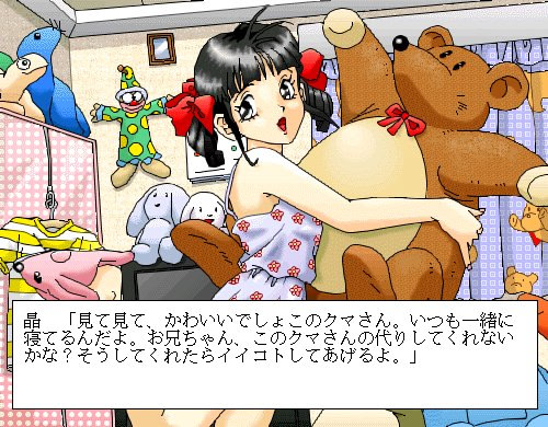 At a place where girls phone in, a guy waits. When a girl calls in, he talks with her. If he respond right, he will meet the girl and have fun. This game is a simpler version of Virtuacall 1. Li's Fun House]