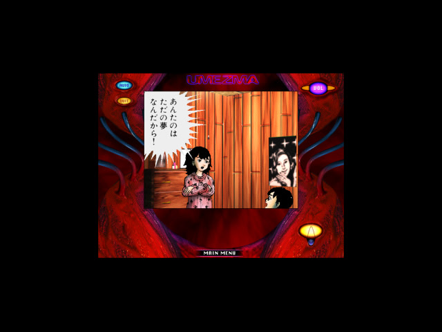 Umezma is a first-person horror game based on the story "Rusty Scissors" from the manga "Kami no Hidarite, Akuma no Migite" by Kazuo Umezu. It was released as part of a series of interactive manga called MangaRom.