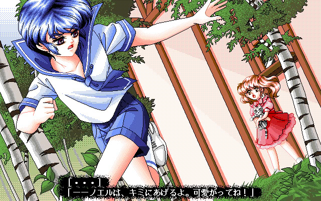 Main heroine Yuri enjoyed a happy childhood. Her father eventually remarries and two families start to live together while Yuri acquiring a new sister. But after Yuri's father death one by one disasters fall upon the family bringing it on the brink of despair. vndbreview]