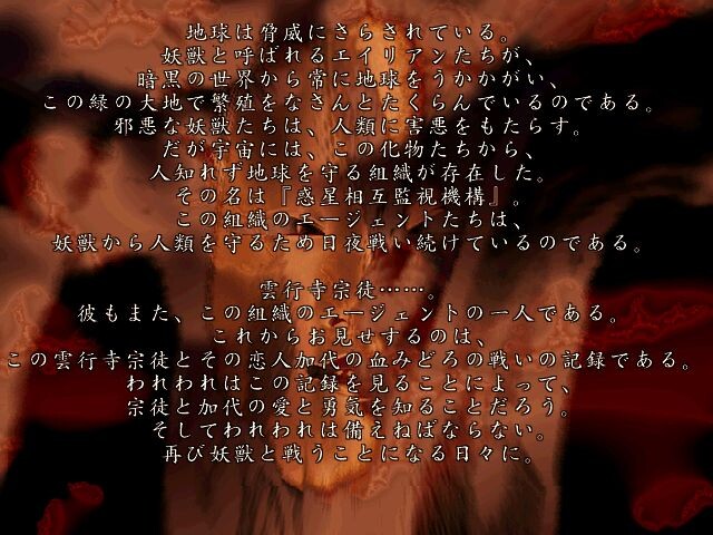 The Earth is under assault by aliens called beasts. They choose this green land as their breeding grounds. But in the Universe there is also an organization that opposes these beasts, and its agents are instantly sent to the Earth. A new round of confrontation starts now. vndbreview]
