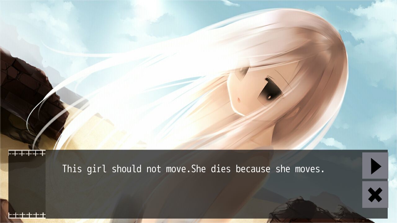 She takes a few steps―― again, she's crushed along with a scream. Death. For some time now, this process has repeated. Waking up in an unknown room, Kyouya finds that he cannot move his body. Calling for help but receiving no response, he spends months, years, unable to do a thing; when a girl that...