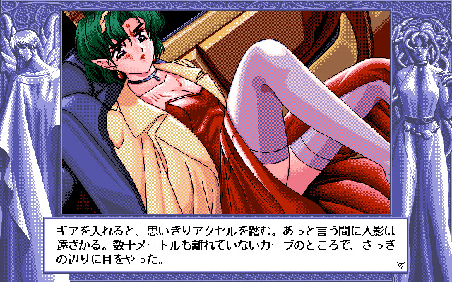 While on the way home from work a mysterious woman begs hero to let her in the car and help her escape from the pursuers. It's up to hero what happens next. vndbreview]