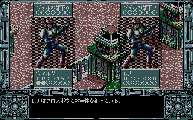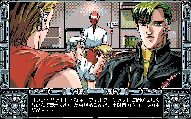 Metal Eye 2 is set in the same sci-fi universe and is closely related story-wise to the first game. In the future, people have built the floating city Zeron, where the best scientists work on creating androids, artificial human beings who look the same way as real ones. Harness Technology is the biggest company that creates androids. The hero of the game is a scientist named Wirg, the father of the first game's protagonist. His work is to train the androids after they have been created. One day, soldiers come to his friend's house and try to detain them for disclosure of secret information, and Wirg has to escape. He is saved by a nun and brought into a small town in the middle of wasteland, where his adventure begins.