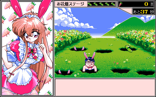 3. The protagonist in this story is the "hero" of the entire game (default name Tatsuya); he offers his services to Selena, the queen of the medieval Rabbi-Rabbi kingdom. Evil bunnies are disturbing the peace in the country side, and the hero, aided by the lovely girl Nina, has to get rid of them and bring back the carrots.