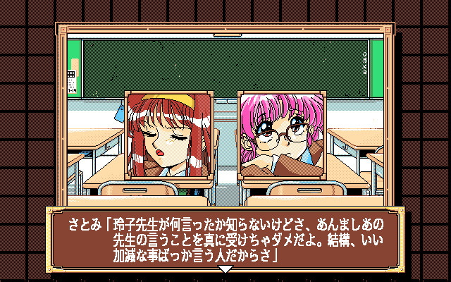 The heroine of the game is a high school student named Maki, who is focused on just one thing: sex with girls. Moby Games]