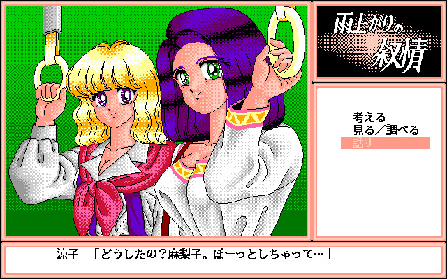 Bell's Avenue is a collection of three very short games, all of which play like minimalist Japanese-style adventures and have stories that revolve around sex. The interaction follows the standard verb-command "Look-Talk-Think" template, without any sub-menus that would allow interaction with different objects.