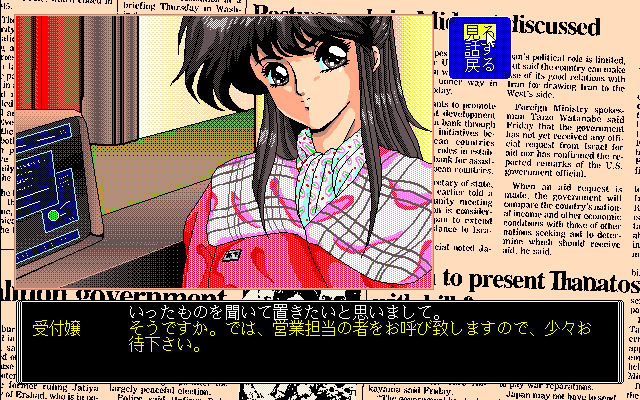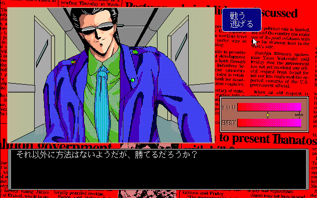 You're a private detective. One day you're shocked to read in an article that your colleague was shot with a swarm of bullets. Once you set on a trail you get a floppy disk that contains information on a trading company that operates secret medicine "Thanatos" that gives enormous strength.