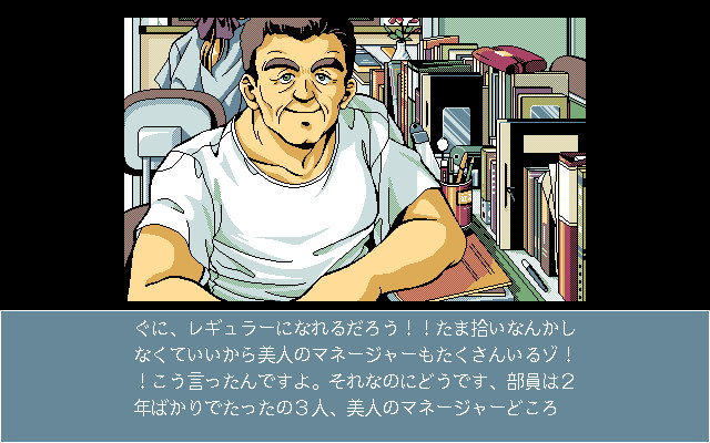 The situation at the high-school soccer club is not good, and the coach is even afraid of getting fired... that's where the hero of the game, a student named Kitayama, steps into the picture. The coach asks him to become a "beauty manager", to search out pretty girls and to convince them participate in club activities. Kitayama is aided by two other schoolmates, but the player has to do the job all by himself...