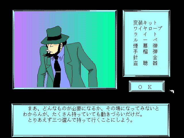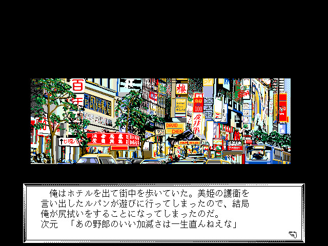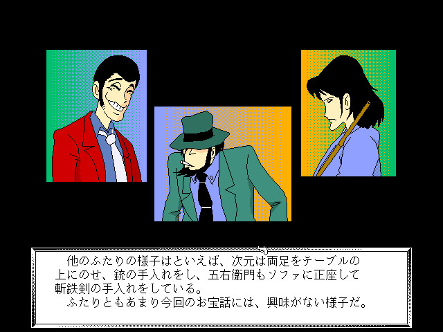 Hong Kong no Mashu is based on the manga Lupin the 3rd and is built like an episode in the series, assuming the player's familiarity with the characters. The central character is the grandson of the fictional "gentleman thief" Arsène Lupin, who follows the same profession, traveling in search of ric...