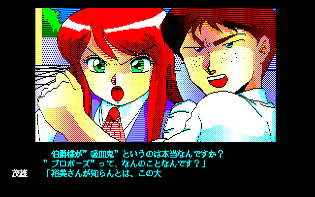 Main character is count Dracula and he proposes to a Japanese girl Umi. Response is put on hold till Dracula picks her up in the daytime. Three months later he visits her school as a male student to charm girls with magic and get Umi whereabouts from them. vndbreview]