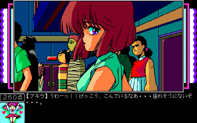 The second chapter in the Pinky Ponky series is identical to its predecessors visually and gameplay-wise. Like in the previous game, the protagonist, a young man named Akira, must successfully seduce five young women in five different scenarios. The goal is to select dialogue choices and actions that would raise the girl's satisfaction meter and trigger the next scene. Failure to do so will break off the current scenario and end the game after the fifth one. The situations are fairly traditional compared to the third game, involving encounters on a train, in an amusement park, in an apartment complex, etc.
